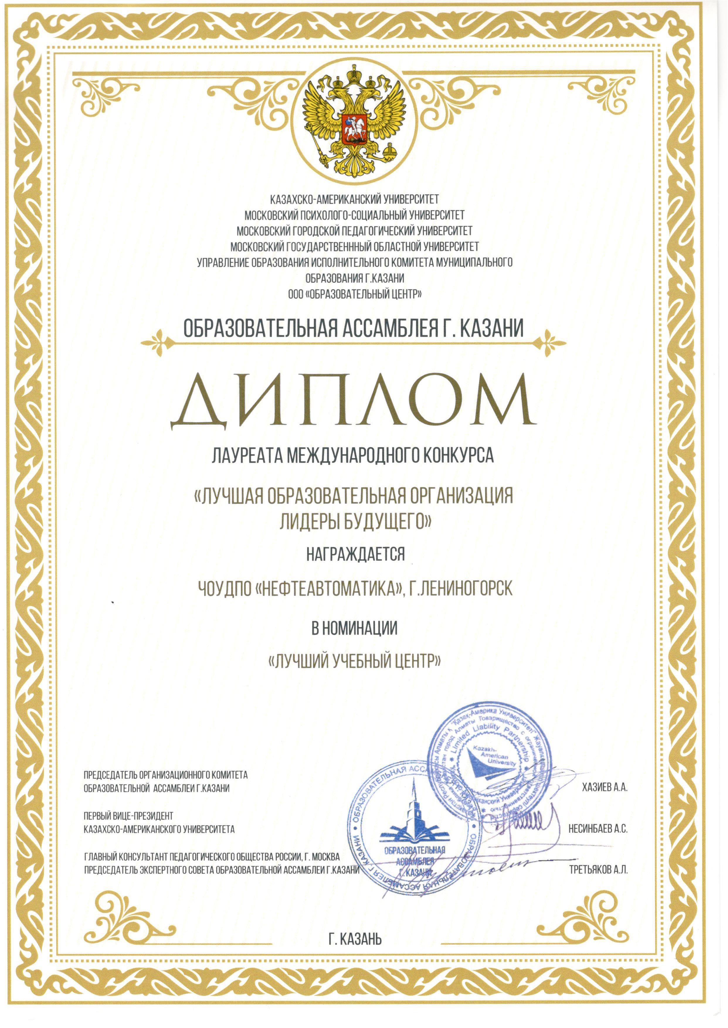 - Диплом лучший Учебный центр